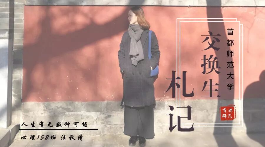 其实之前想去华东师范大学的,但是到我这一届华师大项目就停了,国内项目又只有首师大,所以就选了首师大。因为之前已经有过一次去台湾的经验了,所以对于未知的环境感觉没有那么紧张。当然,当想到要带哪些行李之类的,我也很烦恼,因为从未去过北方,所以出发前有很多担心,毕竟南北差异较大,还是要考虑得周到一点。