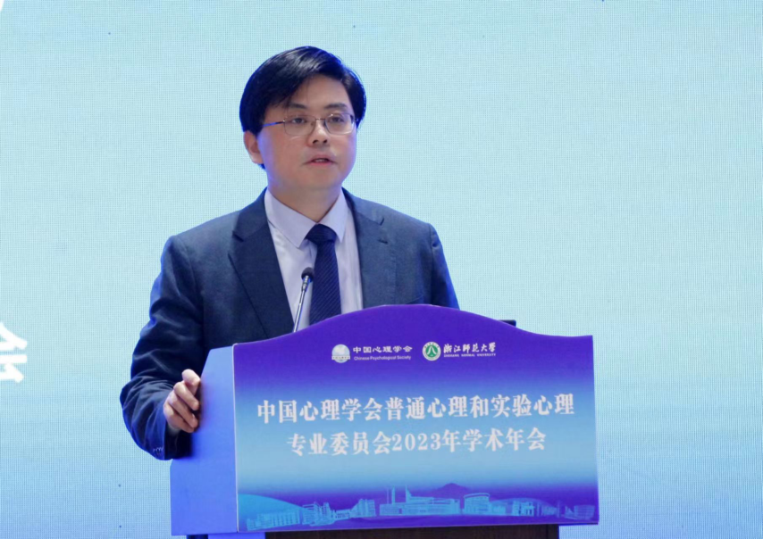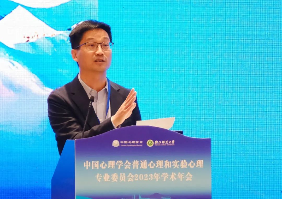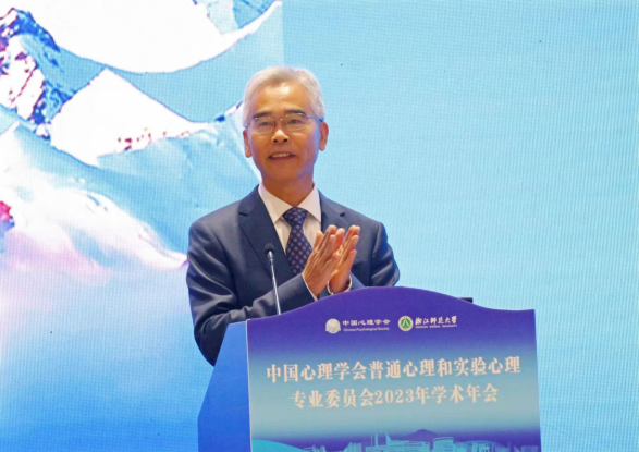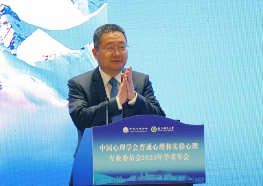 中国心理学会现任理事长赵国祥教授为大会致辞。赵国祥教授对本次普通心理和实验心理专业委员会在冰球突破mg正规官网召开表示热烈祝贺,指出心理学的发展要使用科技的手段进行创新、创造;在实验研究的道路上坚持问题导向,将心理学与国家和社会高质量发展的需求相结合,解决社会最紧迫最亟需的问题。