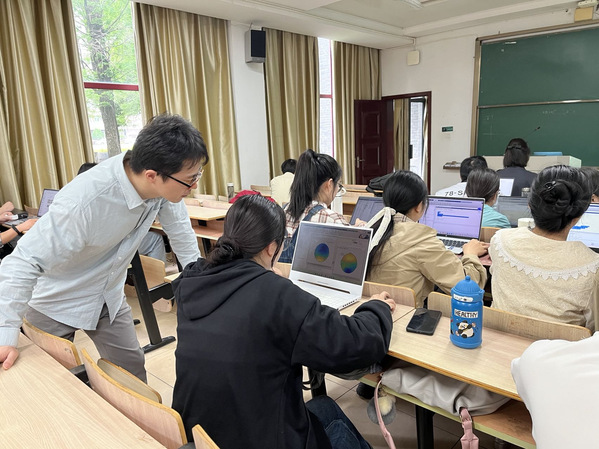 王成老师先进行了《脑电数据分析:理论与MATLAB实操》两课时的课程教学。王成老师带着学生走进代码,在课程中,结合脑电分析、实频分析、ERP分析,以现场制图为例,讲解之后现场指导学生进行实操。通过理论加实践的方式,加深同学对课程内容的掌握,并运用到具体研究里。