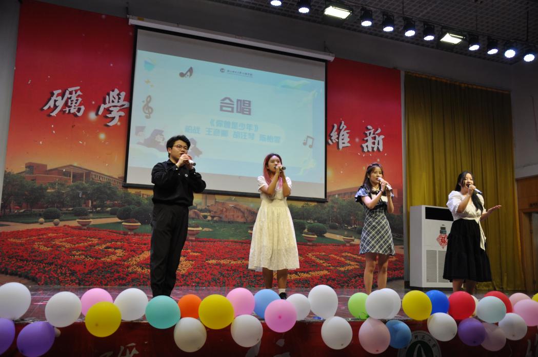 柏战老师携手王彦郦、胡汪琴、陈怡霏三位同学登台献唱《你曾是少年》,向永远纯真、永远最值得怀念的大学时光致敬,向永远年轻的少年们致敬。