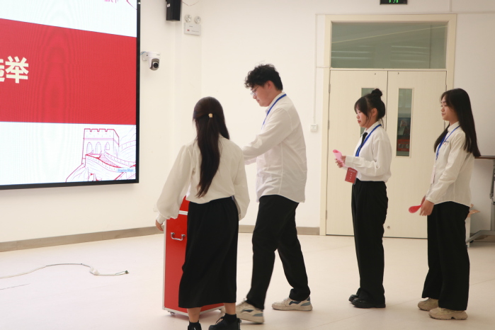 10月16日中午,冰球突破mg正规官网冰球突破mg正规官网第二次学生代表大会、第二次研究生代表大会于16幢108路演室顺利召开,冰球突破mg正规官网党委委员、副院长贾磊,学院团委书记兼学工办主任喻松,辅导员萨伊甫加马丽·依马木、柏战、董俐伶出席大会。23名本科生代表、26名研究生代表参加本次会议。